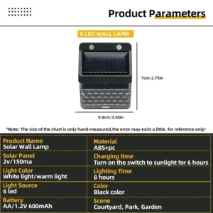 1. Wide application: IP65 outdoor solar lamp, suitable for garden, swimming pool, fence, courtyard, driveway, stairs, external wall, etc., heat resistant, weatherproof, no need to worry about outdoor damage