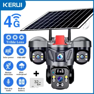 KERUI V380 Pro Outdoor PTZ 6MP WIFI 4G Solar Camera Home Security Triple Lens Camera Solar Panel CCTV Video Surveillance